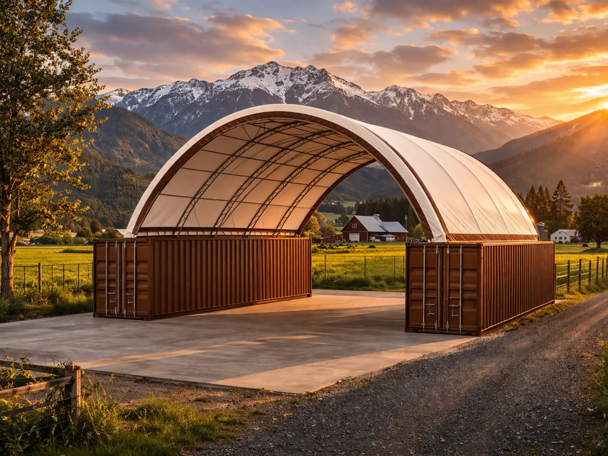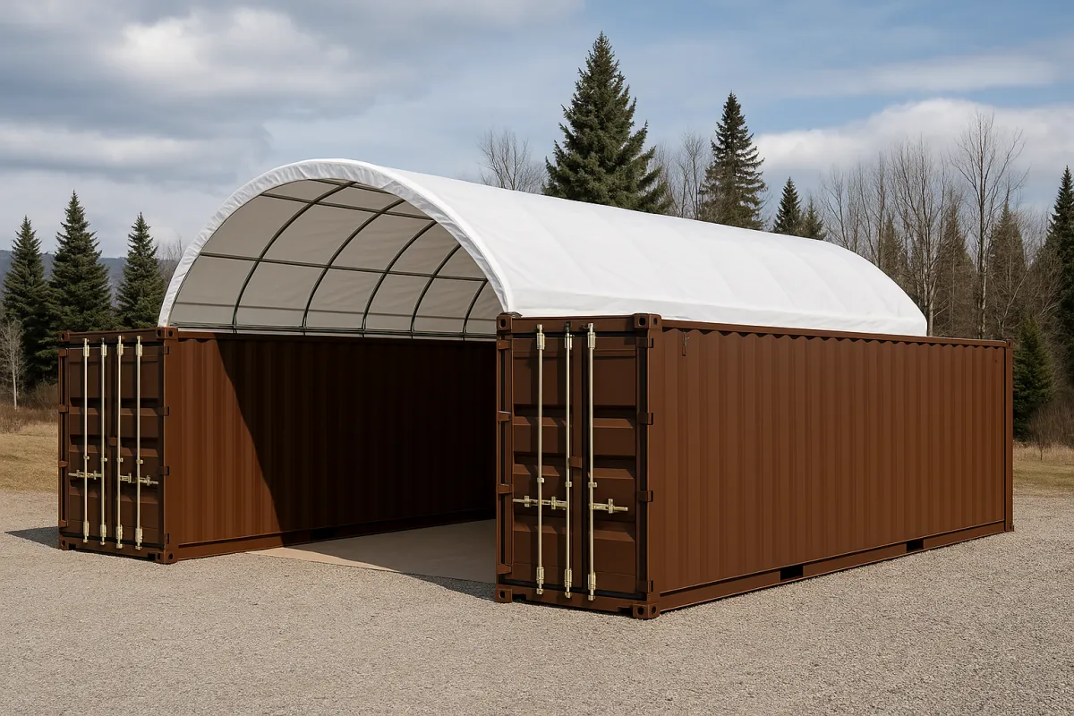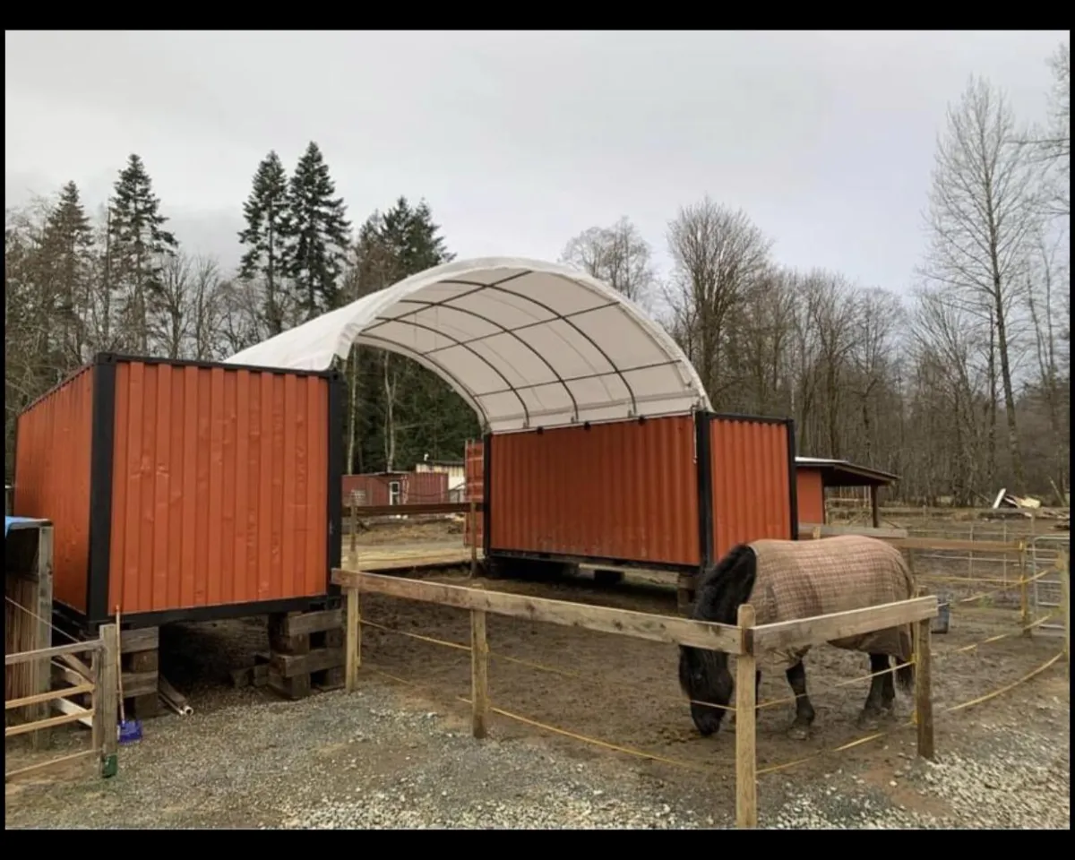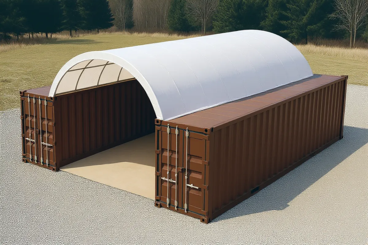 Turns shipping containers into a functional covered storage area