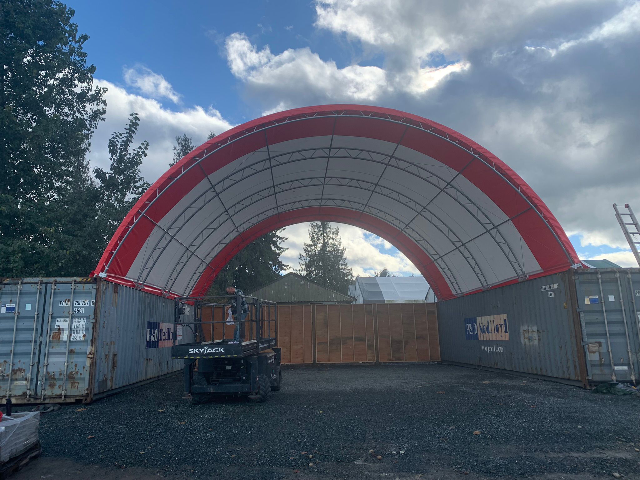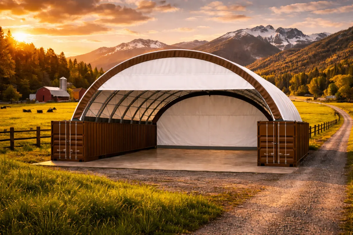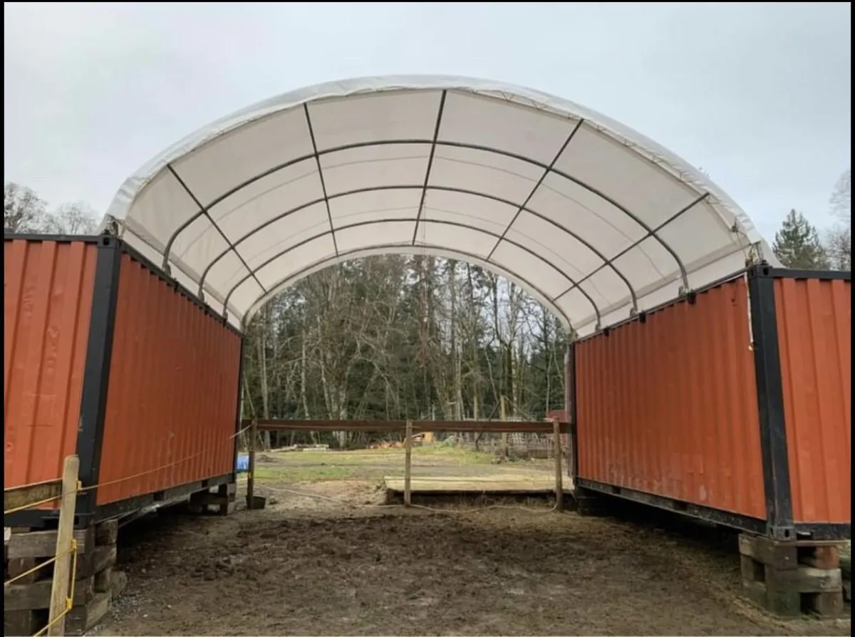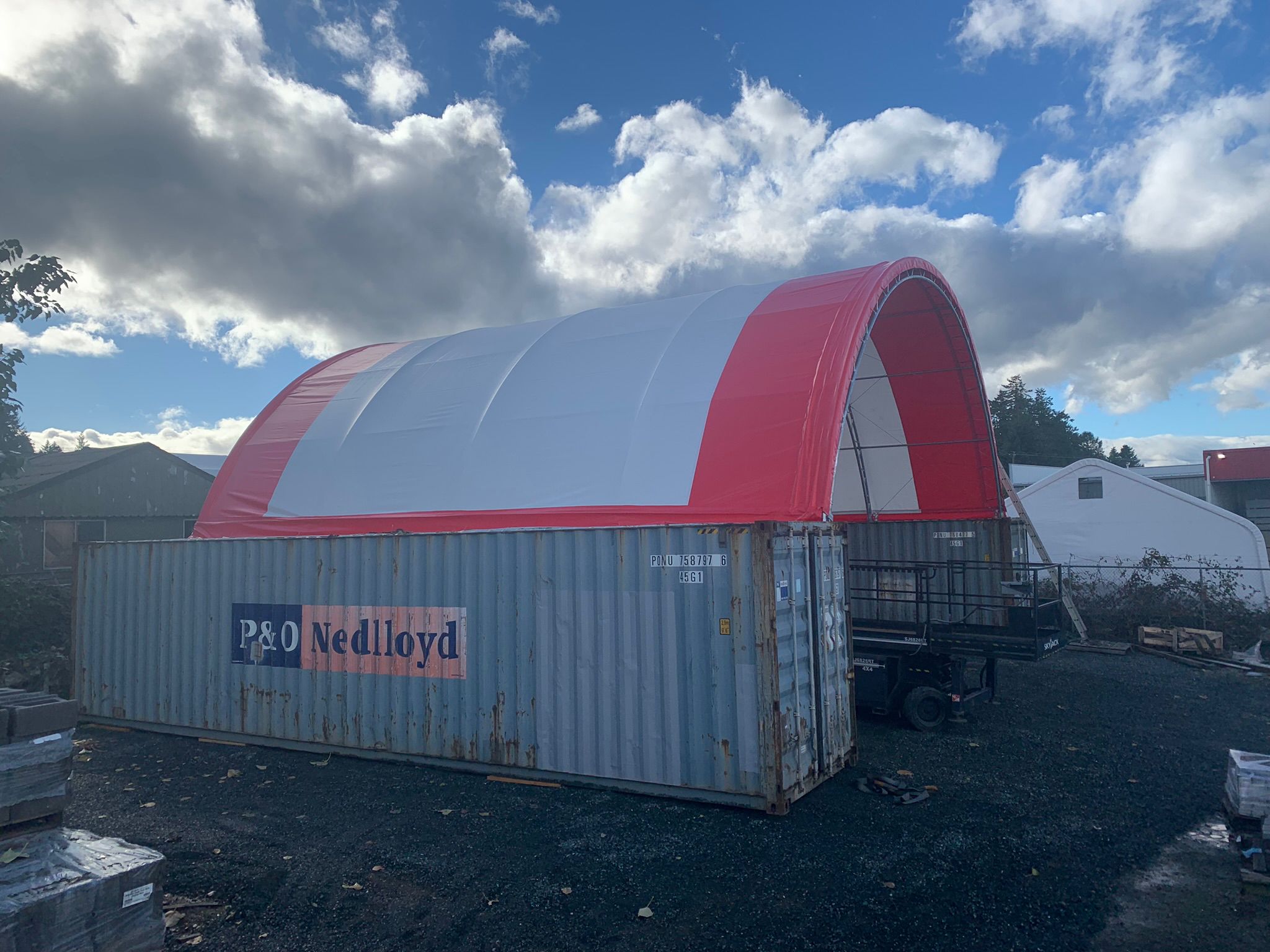 Turns shipping containers into a functional covered storage area